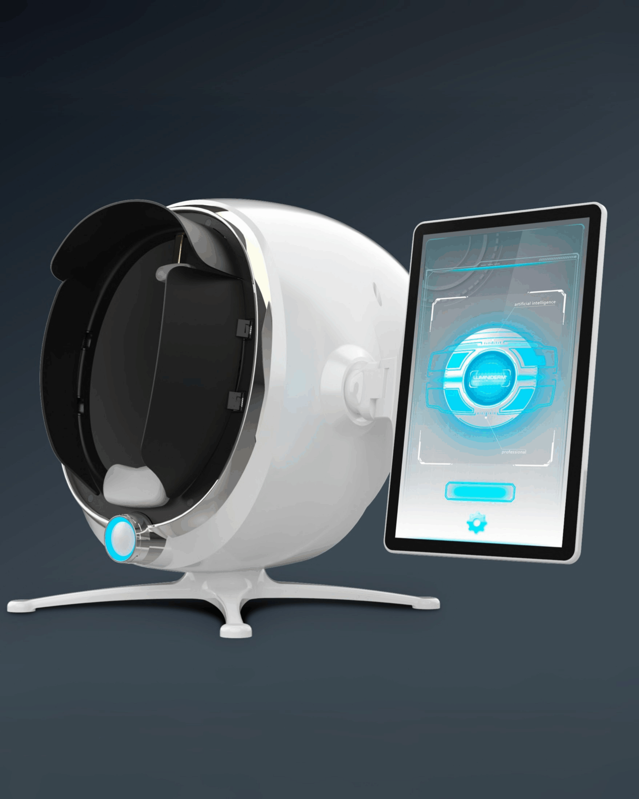 Nuestro escáner facial profesional de alta gama combina inteligencia artificial y tecnologías de imagen para identificar y cuantificar con exactitud múltiples parámetros cutáneos: sebo, pigmentación, colágeno, elasticidad, poros, acné, sensibilidad e hidratación.